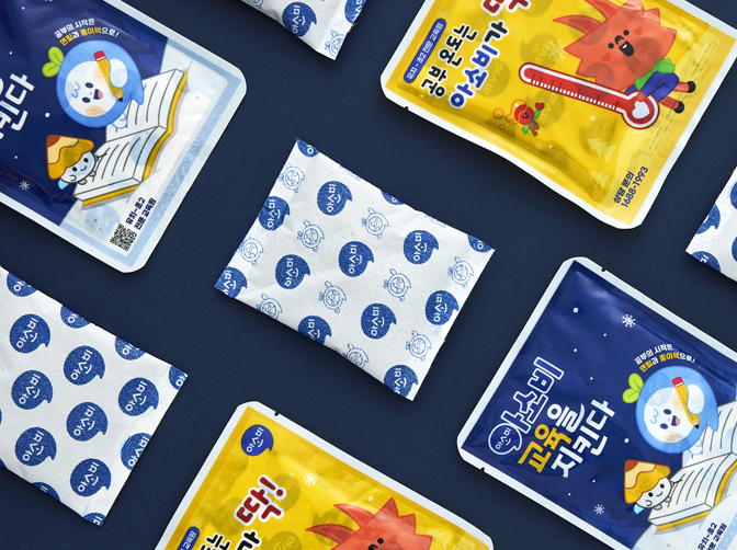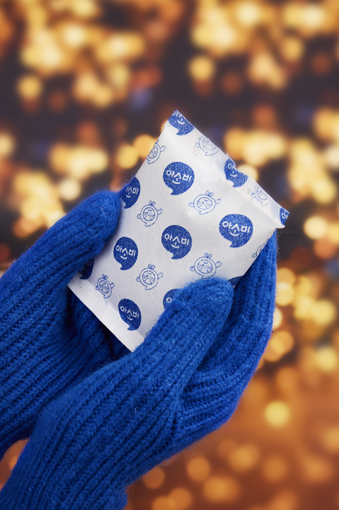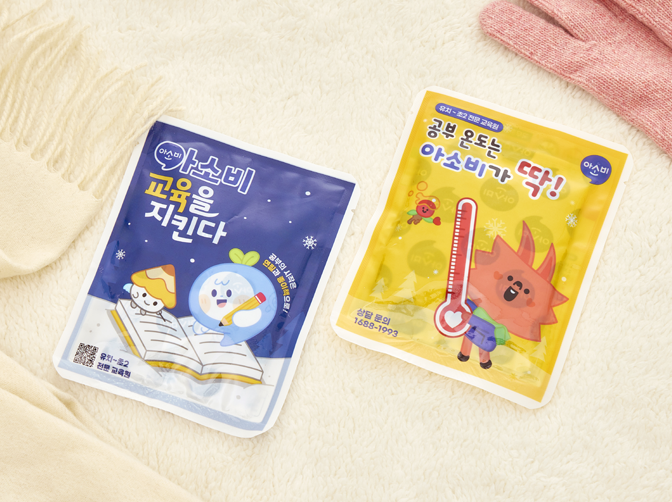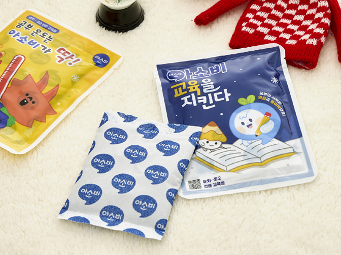 아소비 캐릭터가 그려진 일회용 손난로